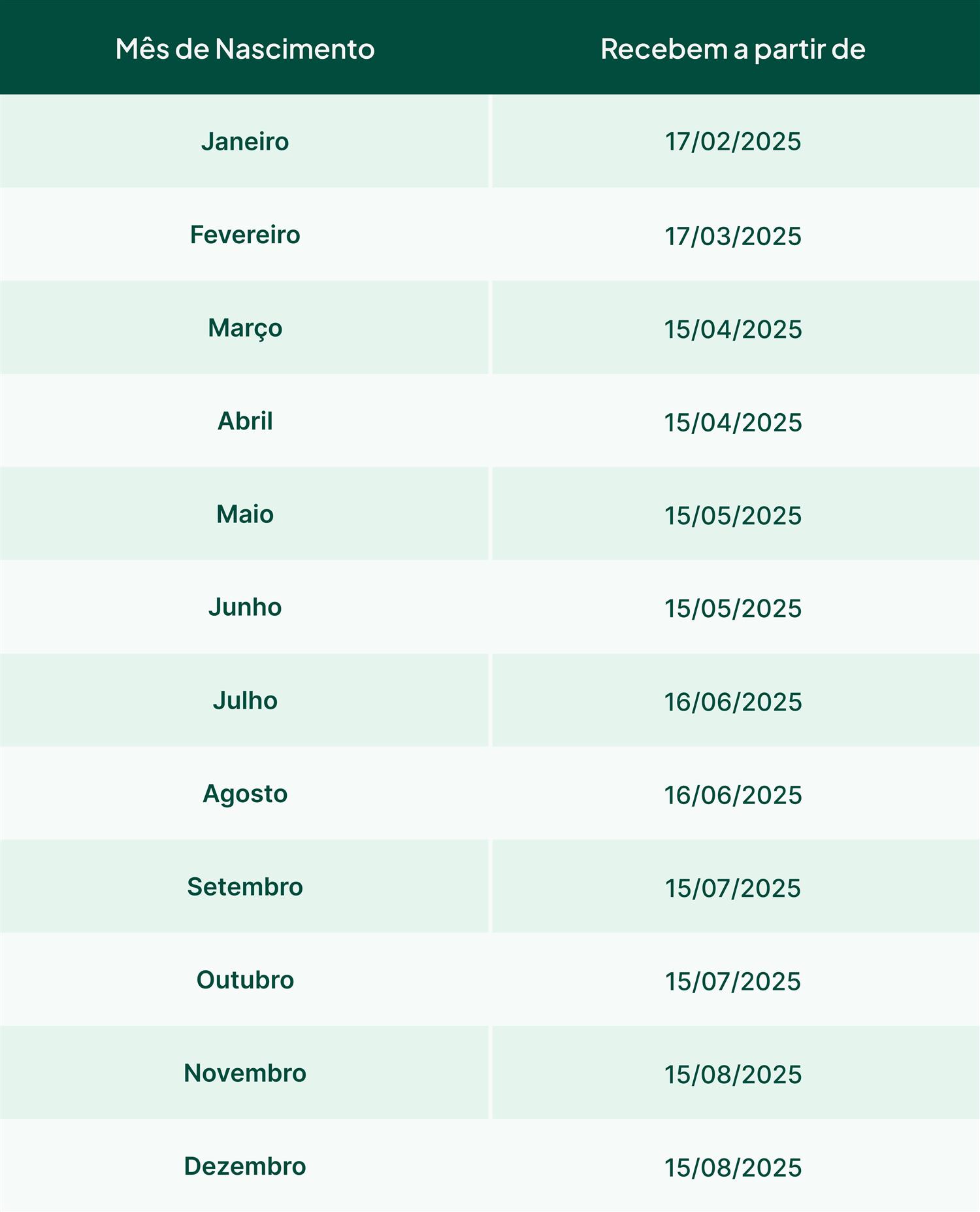 O governo usa a data de nascimento dos colaboradores para realizar os pagamentos. Os cálculos para 2025, conforme o Salário-Mínimo de R$1.518,00, ficará da seguinte maneira: