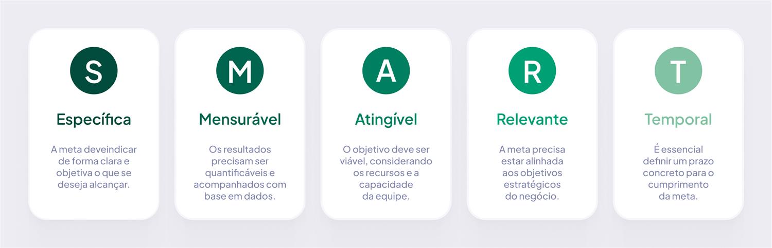 Essas metas servem como um parâmetro claro para medir o progresso e identificar pontos de melhoria.